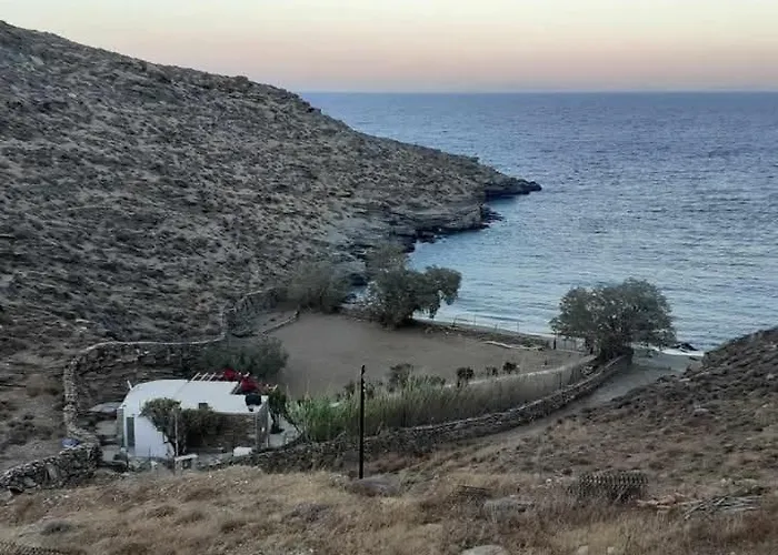 La villa Kavourocheri Beach House Kithnos ofrece una terraza con vistas al mar y se encuentra justo al lado de la Paralia Kavourocheri.